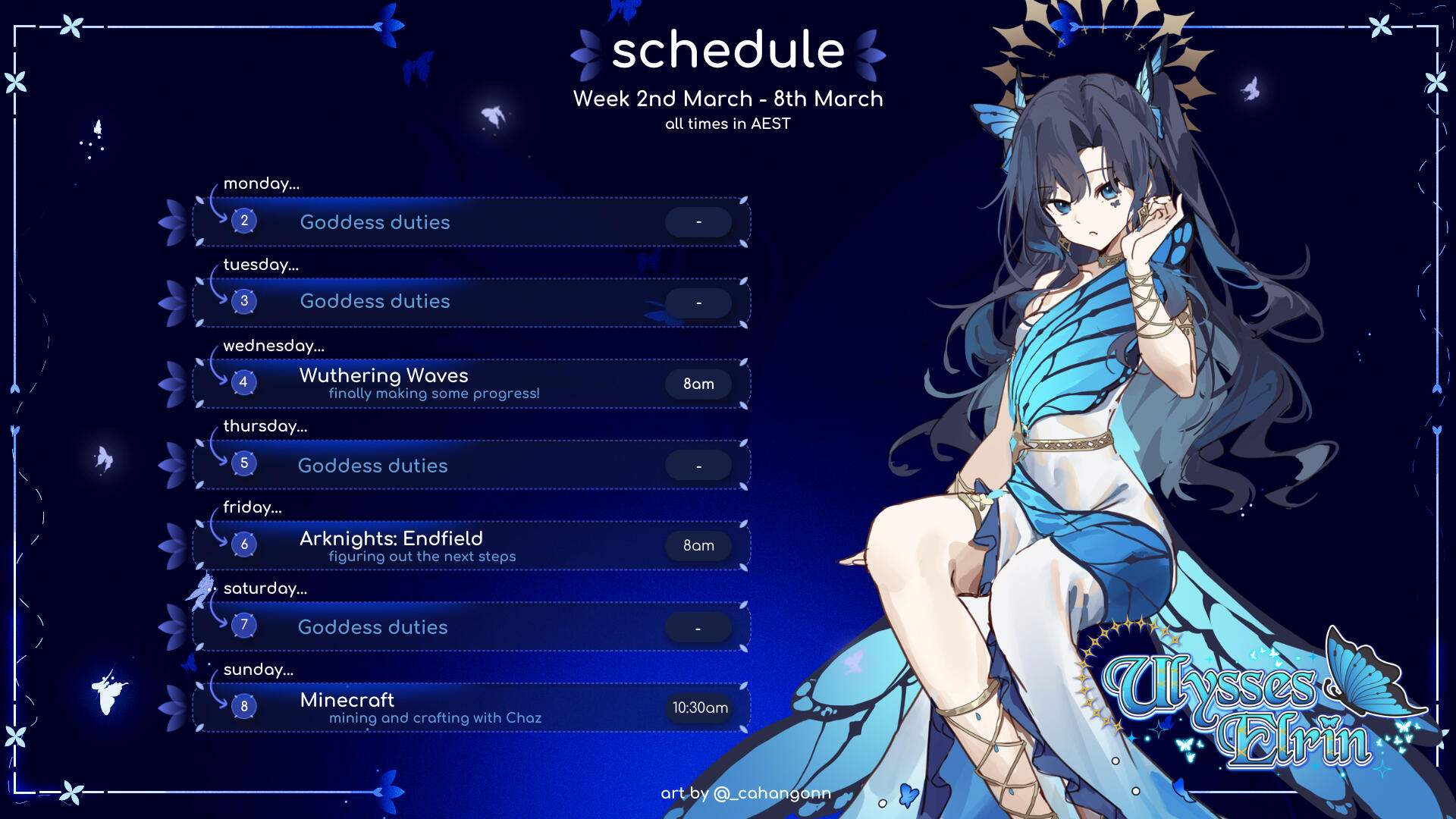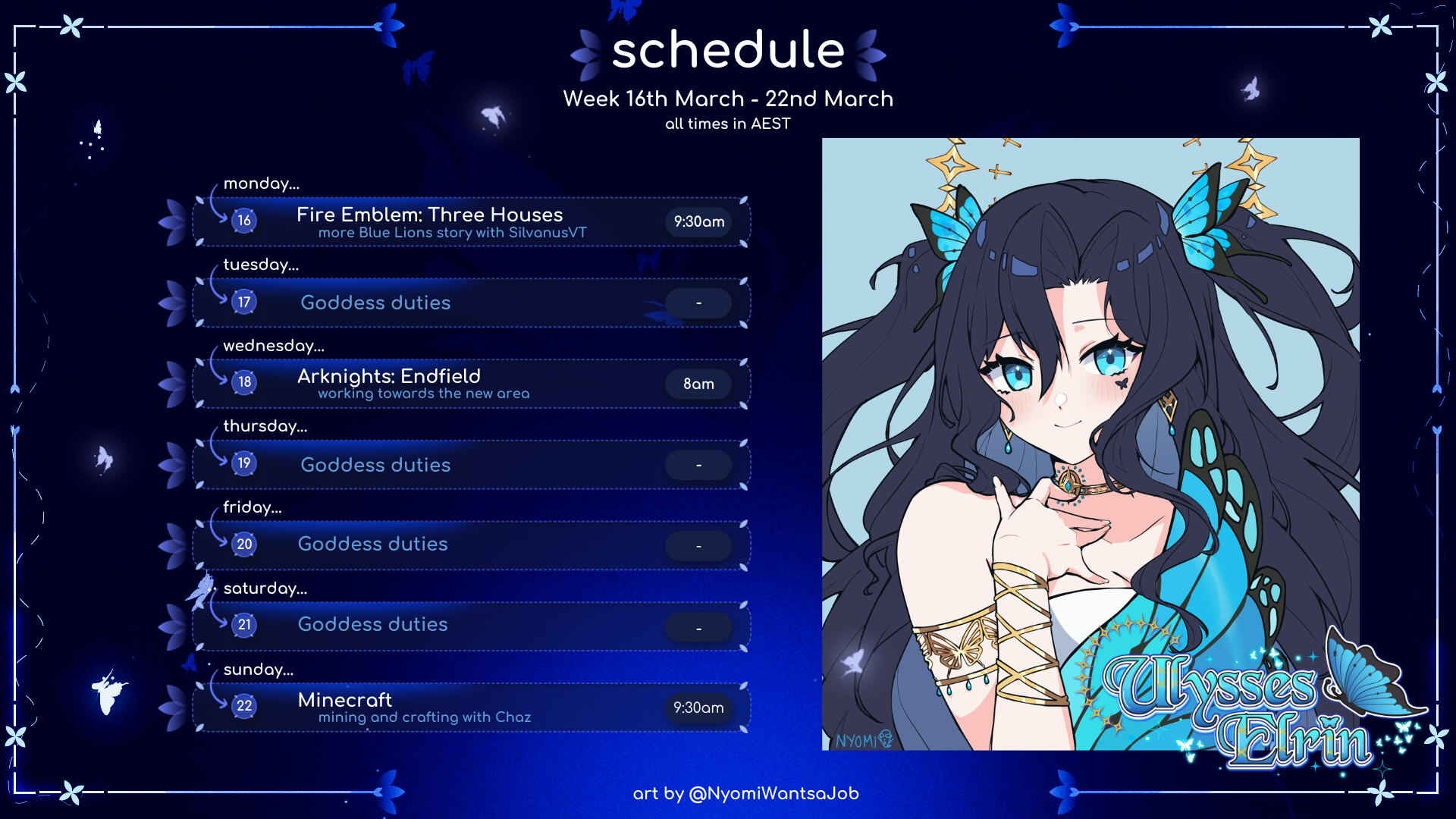 Hi there! My name is Ulysses Elrin, but please feel free to call me Uly.I am a goddess of the cycle of life and rebirth. While I failed in this role in my previous world, I hope to learn from my mistakes and discover all there is to know about the people of this world.Will you join me on my journey? 💙